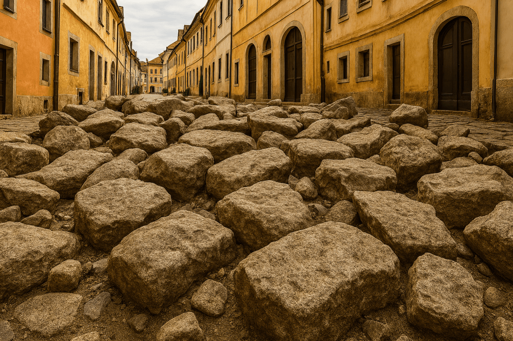 So, my husband and I were talking about trials—because that’s what spiritually nerdy couples do on a casual Friday night—and he dropped the phrase “stumbling blocks” like it was just normal conversation. —and my brain immediately went full spiritual metaphor mode. I pictured this street. It was a mess, a difficult journey with stones the size of toddler torsos. Uneven. Jagged. Heavy. The kind of road that makes you question your life choices and your shoe selection.