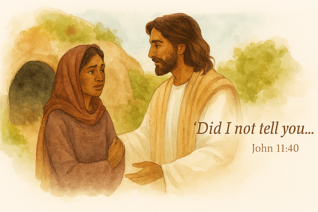 And the way He responds? Not with frustration. Not with a lecture. Just tenderness. Truth. And a reminder: “Did I not tell you that if you believe, you will see the glory of God?” (John 11:40)